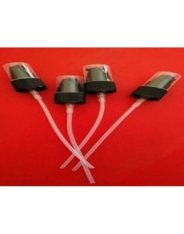Cosmetic dispenser full over cap, aluminium collar, or all plastic are available.