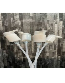 Cosmetic dispenser full over cap, aluminium collar, or all plastic are available.
